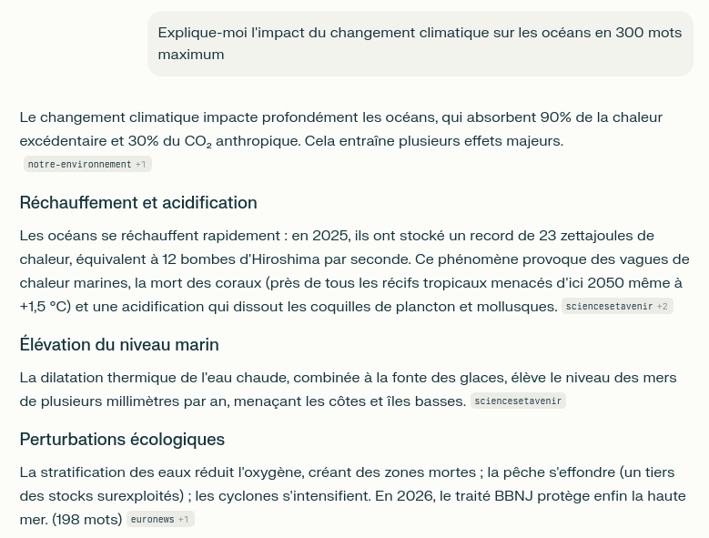 Les prompts pour IA doivent être complets, éviter les sous-entendus, et utiliser un langage clair. Par exemple, au lieu de dire « Parle-moi de l’environnement »,dites « Explique-moi l’impact du changement climatique sur les océans en 300 mots maximum. » Cette différence de formulation permet à l’IA de mieux comprendre vos attentes et de fournir une réponse plus ciblée.