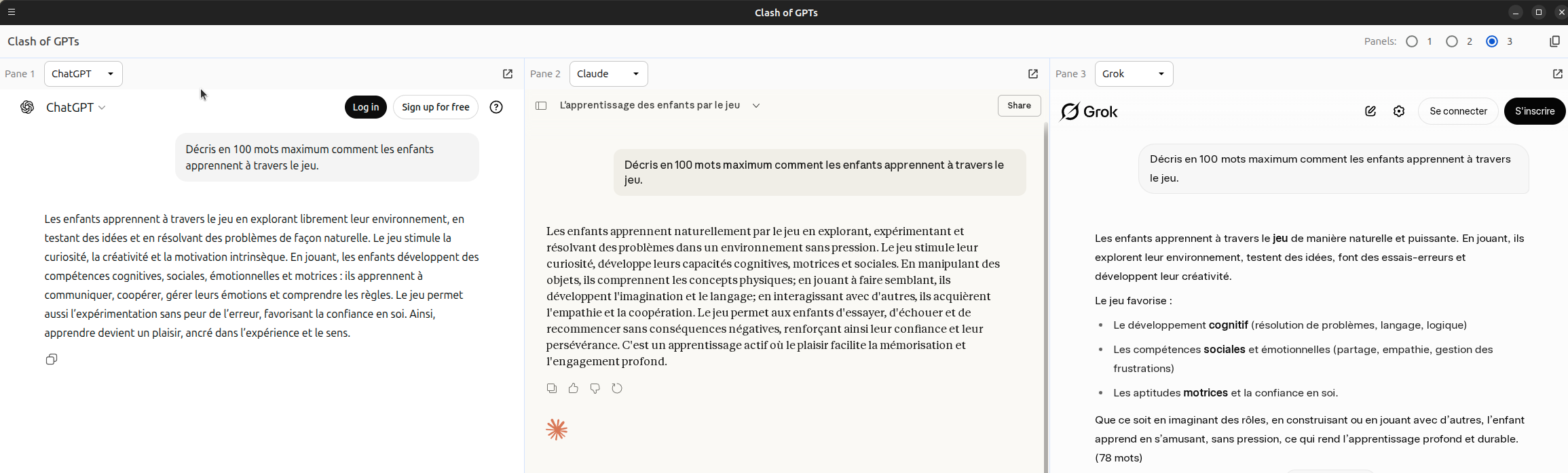 Pour commencer à tester, essayez ce prompt de base avec différents outils IA : « Décris en 100 mots maximum comment les enfants apprennent à travers le jeu. »